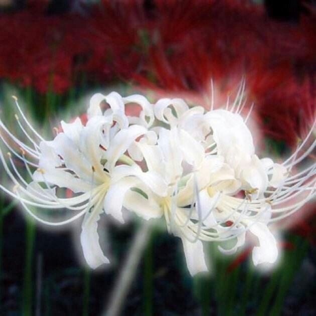 彼岸花又名曼珠沙华,生长在地狱,相传,红色的彼岸花盛开于地狱,白色的彼岸花绽放于天堂……