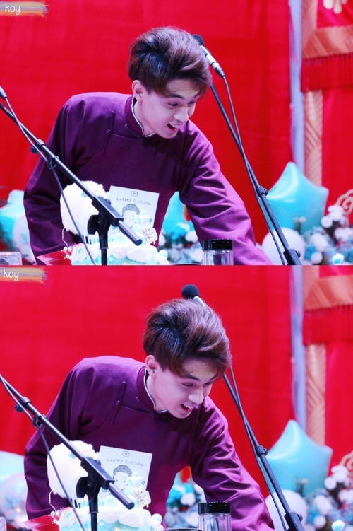 墨莲趁着粉丝送礼物的时间,我拿起单反照了几张秦霄贤的照片