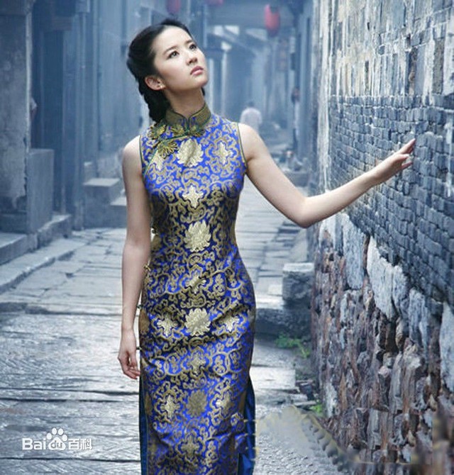 水墨清花采用的古典旗袍设计。