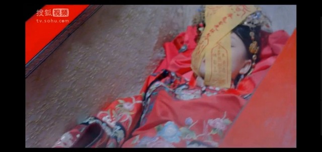 只见她穿着大镶大滚的旧式女装,两只手向上举起,蜷曲成爪随后四面崩塌。