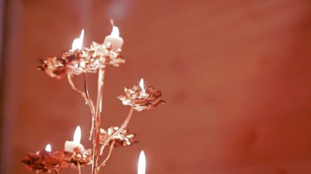 映着金色的灯光,红衣女子缓步持灯走到水池中间,鲜红色的花瓣被尽数撒下,女子轻坐于池边,用其纤纤玉手轻触,温乎着呢。