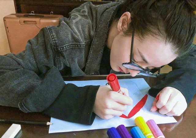 有时候在iPad上面画累了,她会出去走走,或者拿出画纸给未来的小宝宝画一些可爱的画。