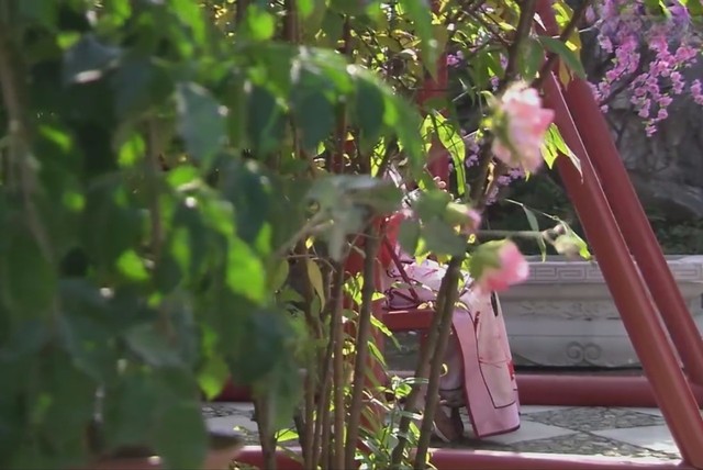 跟着箫声寻去,只见一身淡粉色衣裙的女子坐在秋千上,轻轻摇摆,好像在风中的弱柳迎风,一双玉足前后摆动,光是看着美景,就让人爱不释手了。再听这箫声,不得不让人想要知道,这到底是哪一位俏丽佳人啊!真真是万绿丛中一点红。