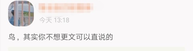 晚上码字看到了一位读者的留言,我也不知道该说什么,但不更文作者心里其实也挺难受的,就觉得,挺对不起你们的,抱歉啊。