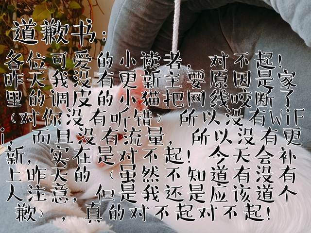 是可爱的作者茉小窈昨天家里猫猫调皮把网线咬坏了所以没有更新在这里道个歉!!!