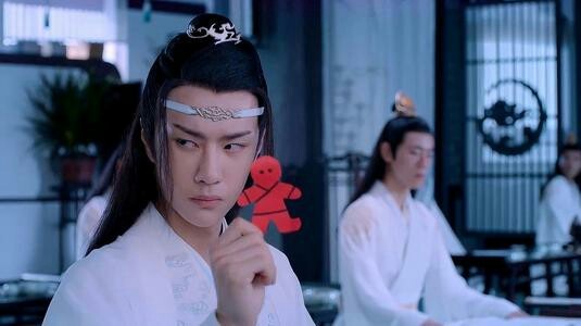 魏无羡等人在籣室里听课,可魏无羡却不老实了,便画了一张乌龟图,施法贴到了蓝启仁的后背,被蓝湛发现施法将身上的纸摘了下来,用一个犀利的眼神警告他。