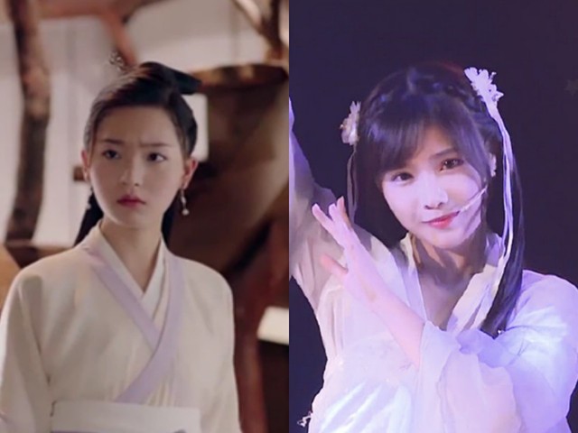 段艺璇穿着龙袍显得格外帅气,后面马玉灵像极了武侠小说了里面的男主角。