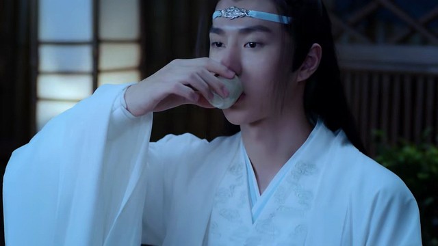 魏无羡倒了一杯酒放到蓝湛身前。