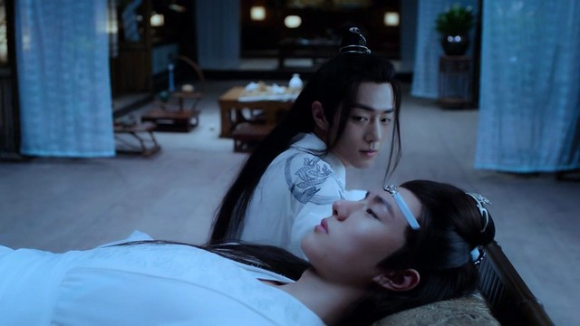 白汐伸手想要安慰魏无羡,就在这时,原本呆坐在一旁的蓝湛突然动了,他将手里的抹额绑到了白汐手腕上,接着就躺到了床上。