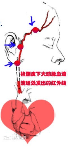 作者大大耳温。体温计一般在腋下、口腔、直肠等处使用,在实际应用中,人们普遍感觉不方便或不舒服。耳式体温计是通过测量耳朵鼓膜的辐射亮度,非接触地实现对人体温度的测量,原理如图2所示。只需将探头对准内耳道,按下测量钮,仅有几秒钟就可得到测量数据,非常适合急重病患者、老人、婴幼儿等使用。但在使用初期,使用者由于不太熟悉这种操作方式,可能会得到几个不同的测量数据,一般来讲实测最大值即是所要数据。使用者熟悉后会比较满意这种体温计。10个月内的宝宝以及有中耳炎的用户比较特别,因为10个月内的宝宝耳朵以及耳道小加上耳道较成人更弯曲,故耳温测量起来更困难。中耳炎的用户因为耳道里有液体,会大大影响耳温计的精度,故中耳炎的用户不适合用耳温计。 额温 耳温和额温均是通过红外线测量,额温是通过红外线照射到额头表面反射回来的情况与光谱温度对应表对照,从而得出准确的温度值。也有很多红外线体温计同时兼有测量耳温额温的功能。额温在前额处采集体温,方便且简单,快捷,一般几秒的测量时间就足够了,而且相当准确。但其专业性高,普及不方便,不适合家庭用户使用,而且在室温超出25摄氏度及室温低于20摄氏度时,额温计易受环境温度影响,包括出汗,吹风开空调等都会对额部采集温度产生一定的影响。