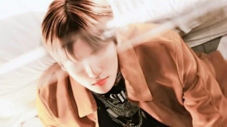 边伯贤坐在夜灵的右面下巴搭着肩。