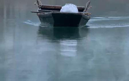 这时,只见泛着丝丝雾气的湖面上,不知何时多了一艘船,正缓缓向众人使来。