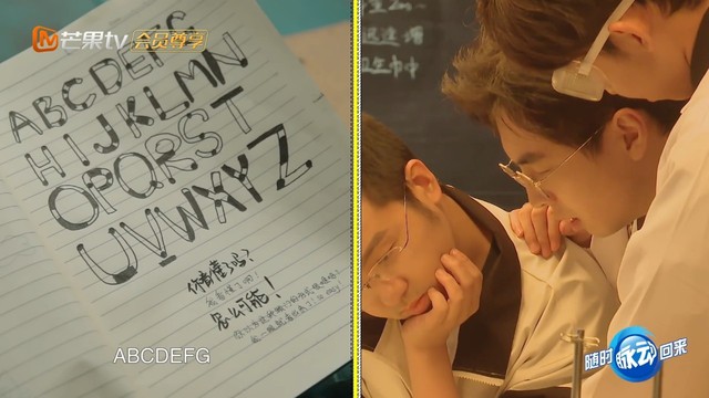 朴卿沂拿着手机来到物理实验室窗口,蒲熠星此刻也站在那里分析,朴卿沂将相册给蒲熠星看,照片是刚才笔记本上的字母