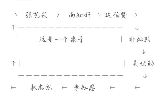 边伯贤,张艺兴,吴世勋,朴灿烈看见南知妍这个笑,就默默的祝李知恩一路平安