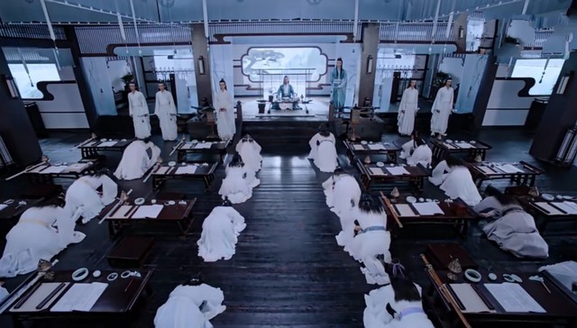 到了早上,魏无羡的桌子上铺满了纸张,忽然一阵钟声想起,魏无羡立马起身跑去了听学的地方,众人分别坐下,江澄坐在前面,魏无羡坐在江澄后面,魏无羡的旁边是江依珊,江依珊的前面是江厌离,而金子轩坐在江厌离旁边,金冰璃坐在金子轩后面,之后魏无羡后面坐着聂怀桑,聂怀桑旁边是孟瑶,孟瑶旁边是薛洋,