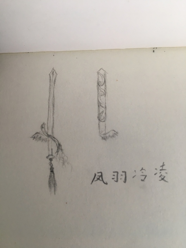 武器:凤羽冷凌(剑)特点:剑格是一只鸟(凤凰)其中一边有一只翅膀,尾巴呈弧形,凤凰整个身体呈S形,剑柄下面还有流苏,剑鞘上有另一只翅膀,如果合上剑鞘正好就是一对翅膀。