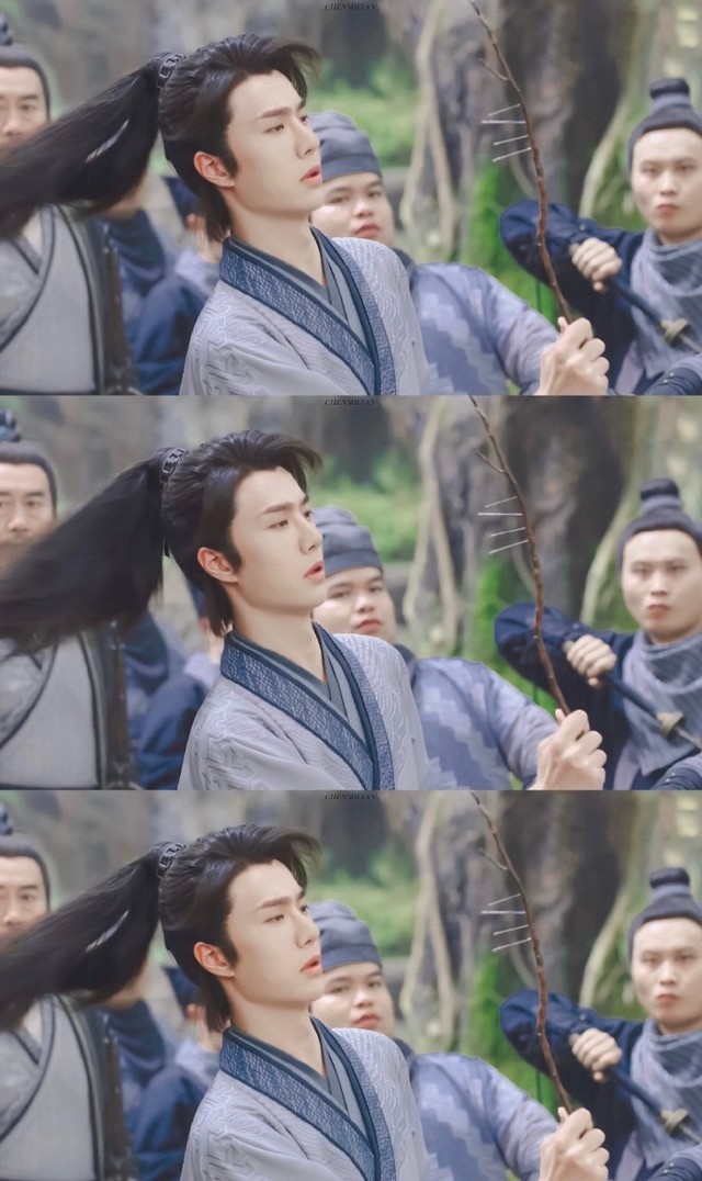 他们突然一起挥刀向谢允头顶砍来,我不禁有些紧张,但我觉得他们都是很有分寸的人,应该不至于伤了他。只见谢允此时把树枝绕在了一个人的脖子上,而后握着那人的手,手腕一转,向另一个人的小腹横刀砍去。不过,他倒也心善,用的是刀柄。这突然让我怀疑,这家伙还是昨晚见到的最是”心善”拜佛又杀人的少年吗?但刚刚被我选中的那个人显然是不服输,从他背后偷袭,我正要上前去帮他。谢允将手里操控着的卖肉的壮汉推到了一边,然后用轻功轻轻一跃,跳到他身后,稳稳落地。就着落地时的缓冲蹲下,挥着刀柄向这人的小腿刺去。只听他一声哀嚎,捂着腿倒在了地上。