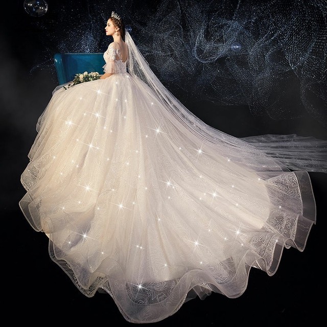 坠在地上的纱像是星河坠落在地上。