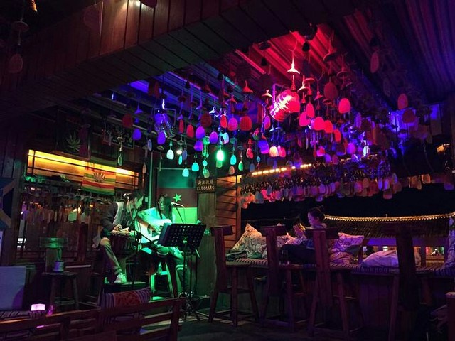 在酒吧里,我和同学在一起玩耍,有堵住,输了的人走出去第一个人亲一下嘴。