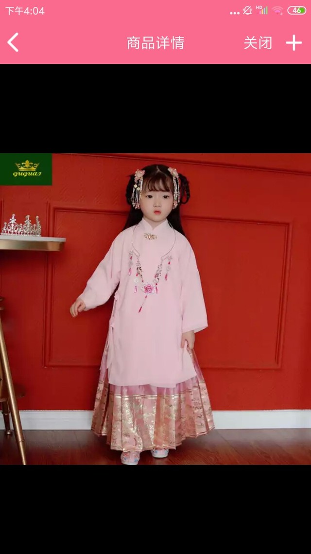 如上图一件粉色的马面裙。头发也是这样弄的。如上图弄得焦巧可爱。也带着和上图一样的头饰。整个人显得萌萌哒。