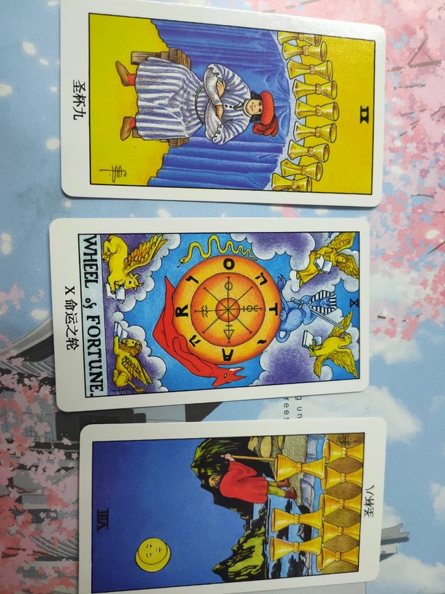 苏言现在:圣杯九:形式有利,有希望成功。命运之轮:一见钟情的恋情发生。圣杯八逆位:新的恋情降临