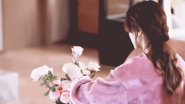 此时的迪丽热巴是在用插花掩饰自己的紧张。