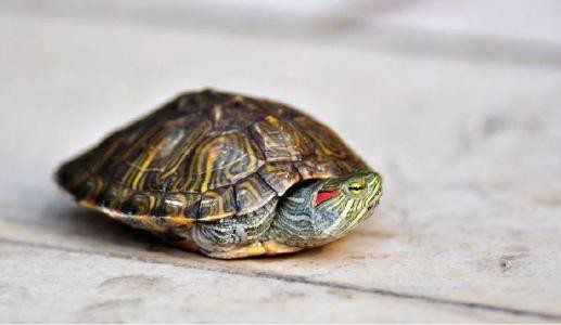 小小的乌龟,石色的外壳,浅绿的眼部,看见人就把整个身体缩起来