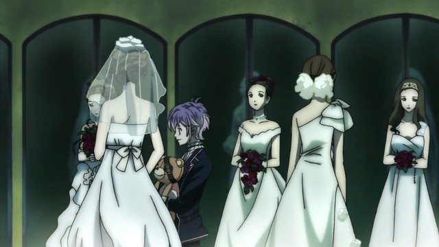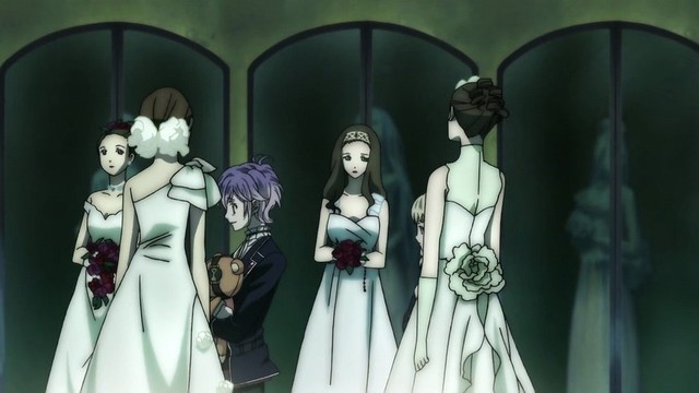 小森唯(看着这些个长相美丽神情各异穿着洁白的婚纱的女孩子们,还有那似乎有灵魂的双眼,小森唯突然打了一个寒颤。)
