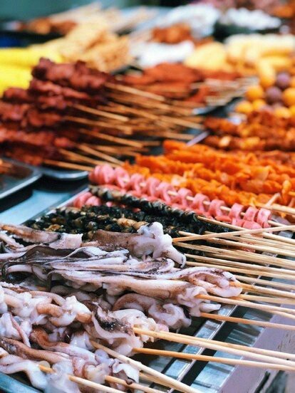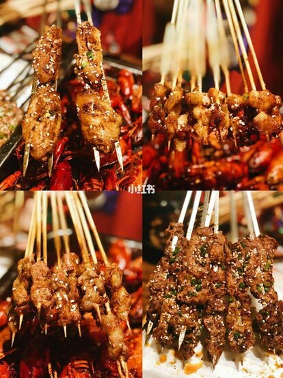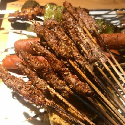 服务员您的酒和烤串。