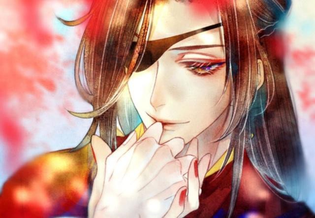 魏无羡.绝境鬼王,“血雨探花”,衣红胜枫,肤白若雪,右眼戴着一只黑色眼罩,银蝶追逐在衣襟袖间……