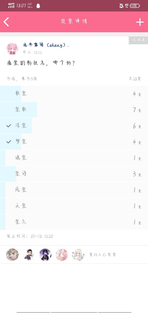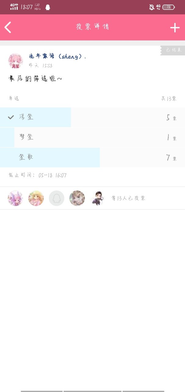 笙包爱吃糖在读者群已经基本选出了