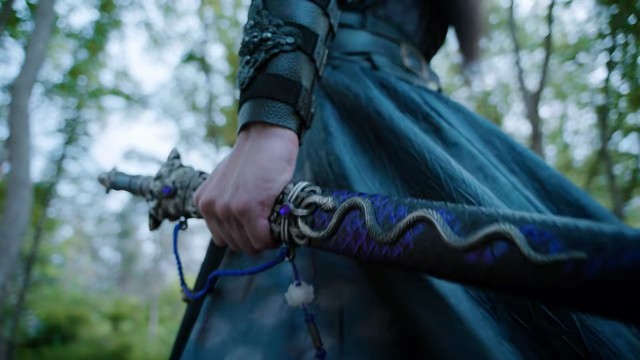 来人一袭紫衣,长发束在脑后,垂在身侧的手,一边腕上戴在蛇形手环,另一边握着一把紫色佩剑,剑身挂着一条白玉莲花剑坠。