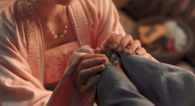 喝完药,侍女去收拾东西,可她却突然摔碎了药碗,捡起碎片就往要脖子上割。