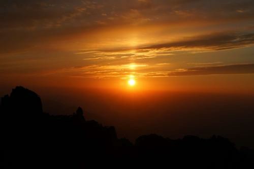 良辰美景,空旷的山顶上有东风徐徐而来,夕阳西下,太阳一点点地靠近地平线,余辉染红了天际。