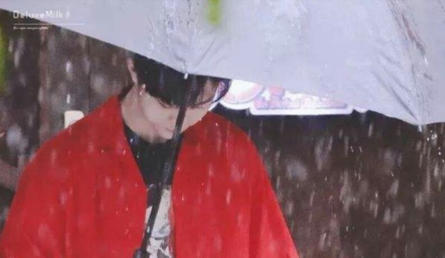 此时的陈立农撑着伞在雨中大步走着,这个点了,应该是着急去上班吧............
