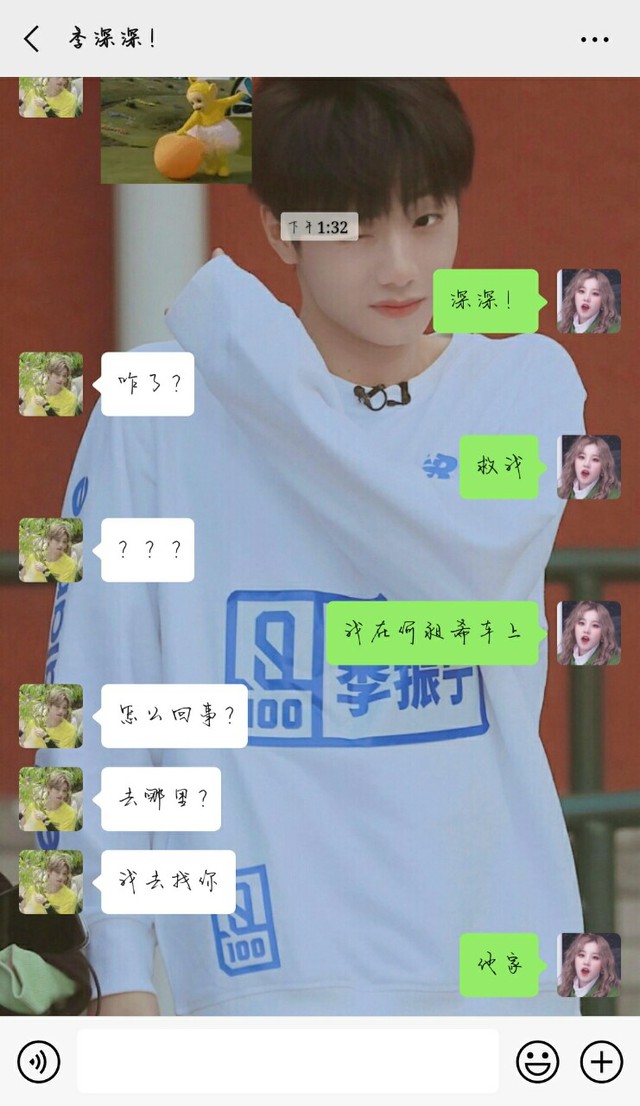 车上,李星希跟李振宁发着微信。