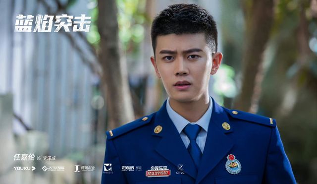 夜幕之下,仍有一群奔跑的逆行者,三辆消防车驶在路上响着鸣笛