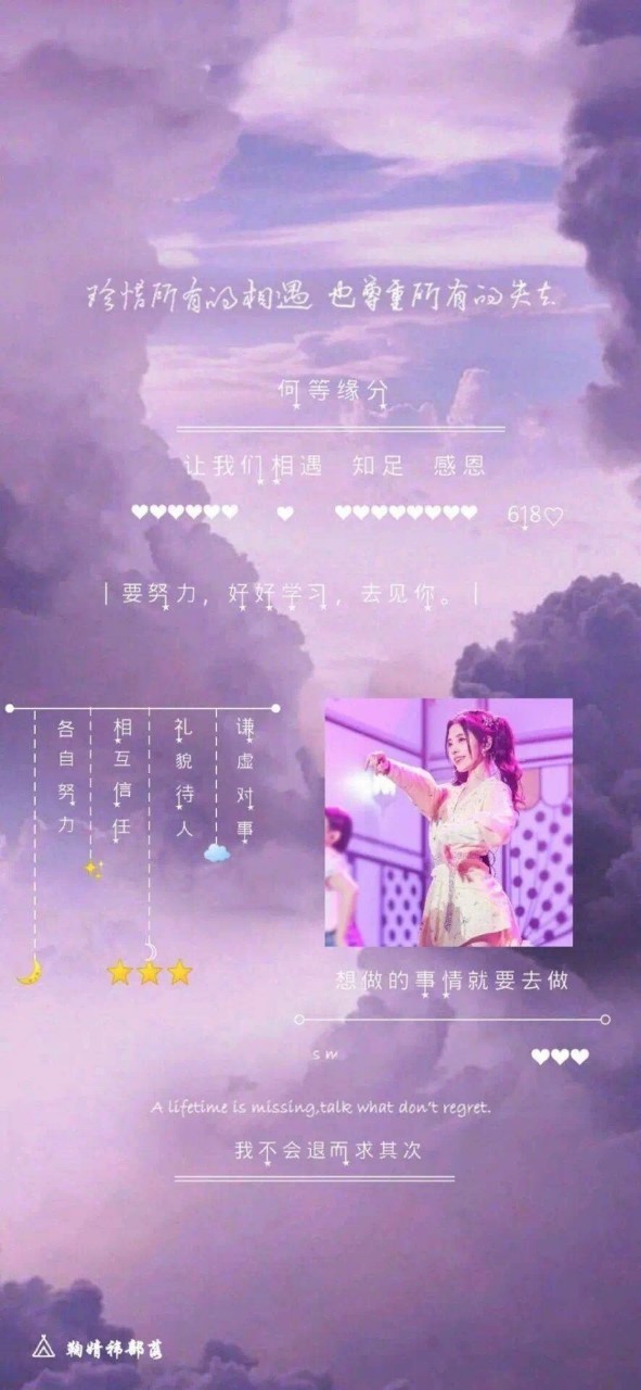 鞠婧祎其实我觉得时间其实更是把雕工刀,每个人都是一件未成形的艺术品,让我们随着岁月变得越来越精致细微,至于最终会成怎样?那一定是看你有没有认真对待,我有人生有理想有追求,我为之努力让自己看上去不会过于平凡。我们都在追寻梦想的路上,可能会超出自己想象的艰辛,但是那不算什么!有个精彩的人生,值了!加油吧!这是一个用实力说话的世界!绝对不让你们失望不管认识或不认识我!