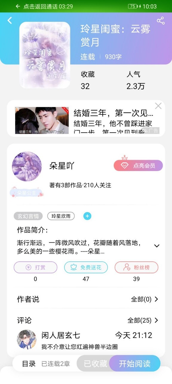 朵星小姐于4月份更新了一章节。