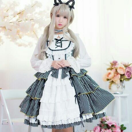 便看到一个穿着洛丽塔服装的少女:衣服: