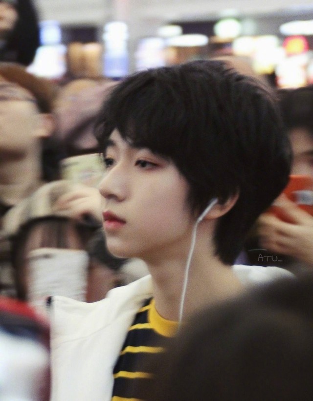 “人群中,最为凸显的就是那个带着黑色口罩,一身黑的丁程鑫”