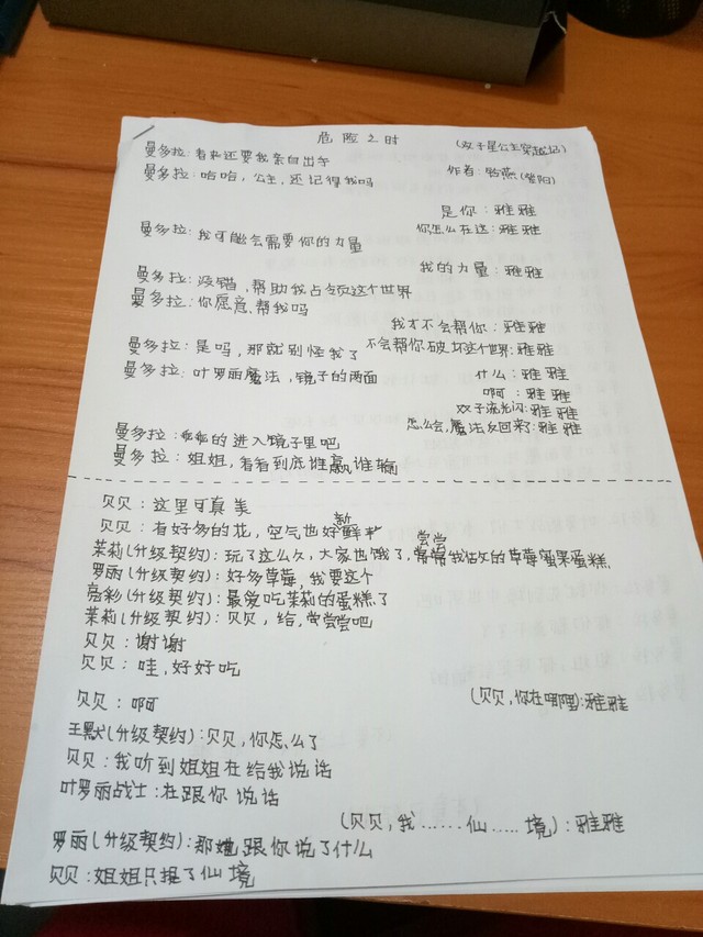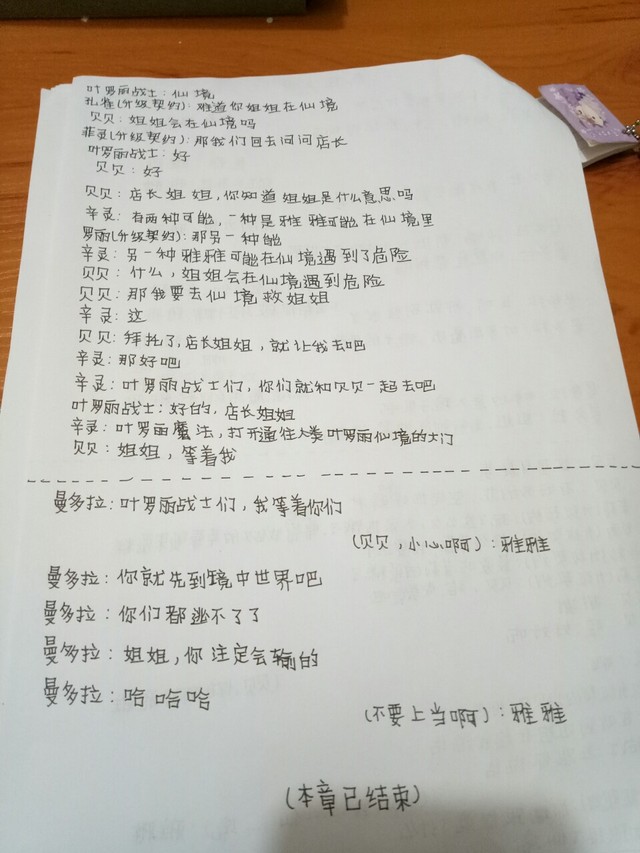 安铃作者由于我现在不能玩手机,所以我只好在纸上写完之后发给你们看了