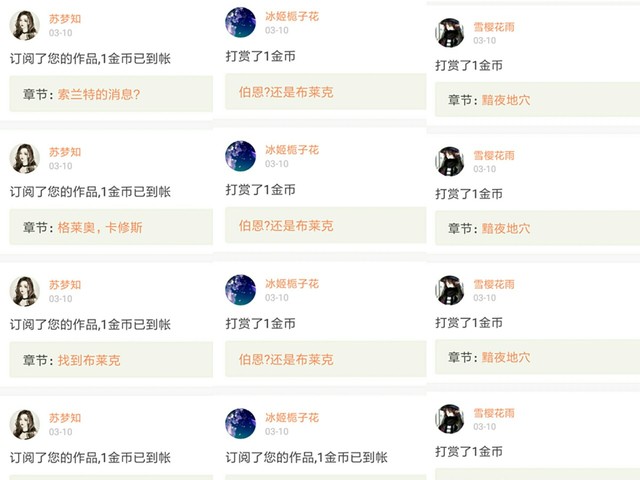 还有这些小可爱们打赏的金币,感谢~
