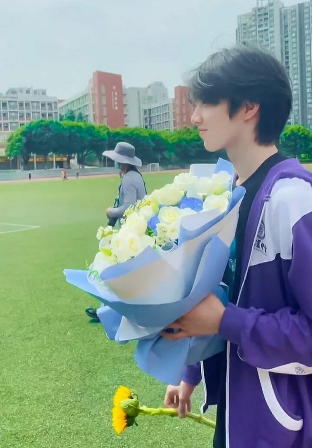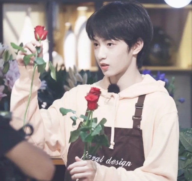 看刘耀文出来我立马跑上去把花送给他