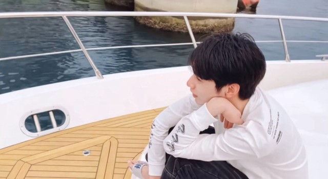 再找到他时他正眼眶微红的坐在船尾