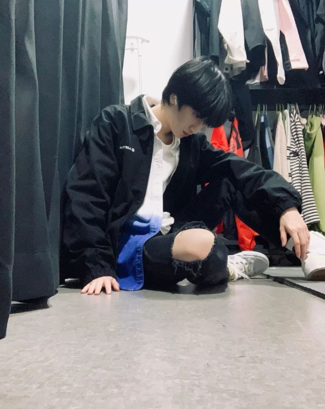 结果当我美滋滋的从试衣间出来时就看到他瘫坐在地上
