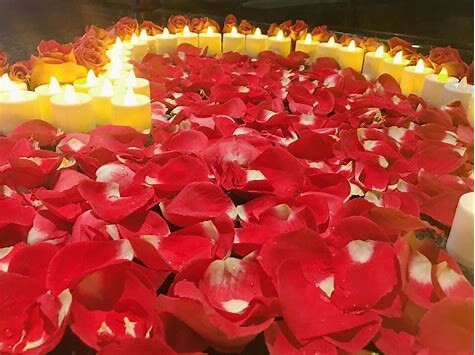 他手捧一束大玫瑰花,大概有99朵,他前面还有用花瓣摆成心形花圈,旁边还立有一块板,写着“我❤吴琳欢”!