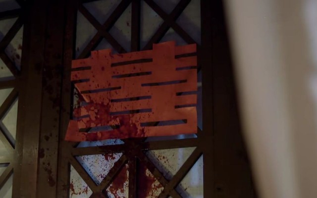 贴了“喜”字的纸窗户上突然溅上一层血。
