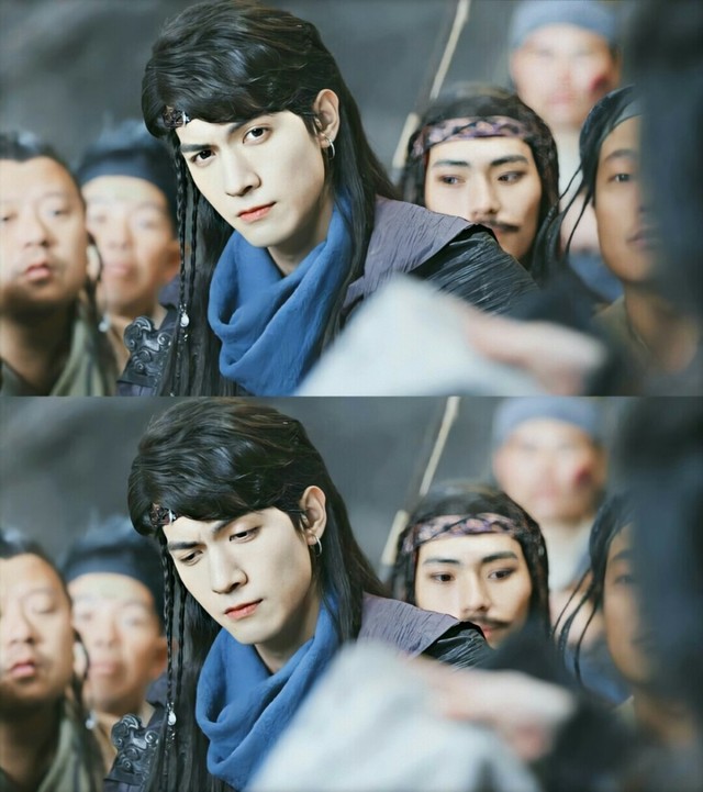 说书先生刚刚离开,门外便又进来了一位邪魅狂狷的男人,一身走江湖的前卫打扮,头上戴着黑色的抹额,脖子上围着蓝色的丝巾,背上背着的剑亦是用布裹着,看不真切。