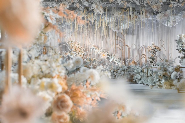 酒店装修豪华,来人很多,桌子多得数不清,这场婚礼办得很隆重。
